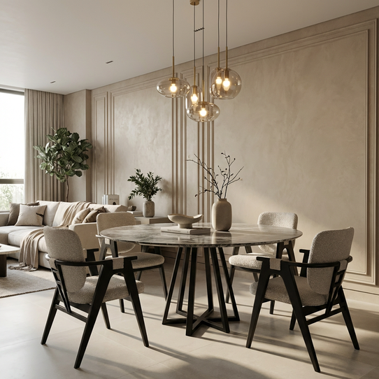 All our dining table pieces are made from natural marble and finished with a protective coating for everyday use. Built with a modular system for easier handling and installation. Fully customizable in marble type and size to match your space.