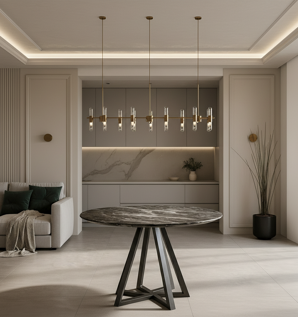 crafted from natural marble tops and refined metal bases. Each tabletop showcases its own distinct colours and veins, making the material the focal point of the design. Inspired by the natural patterns and hues of the stone, Caliza emphasises materiality over ornament, combining a strong sculptural presence with everyday functionality so your dining room becomes a timeless and elegant setting. Clean lines and contemporary finishes add a modern touch, creating a unique, signature look that transforms your home into a curated and unforgettable space